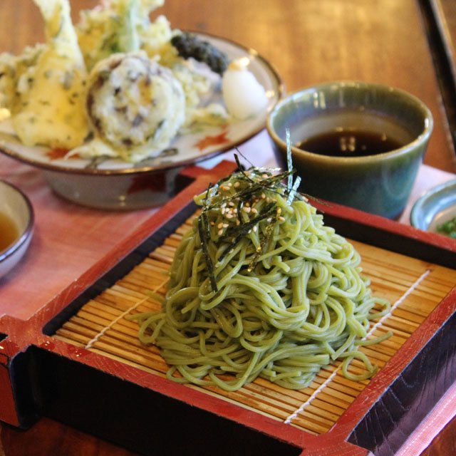 茶の華亭さんではお茶を使用した数々のお料理が楽しめます。その中でも、こちらの茶そばは不動の人気メニューなのだそう。